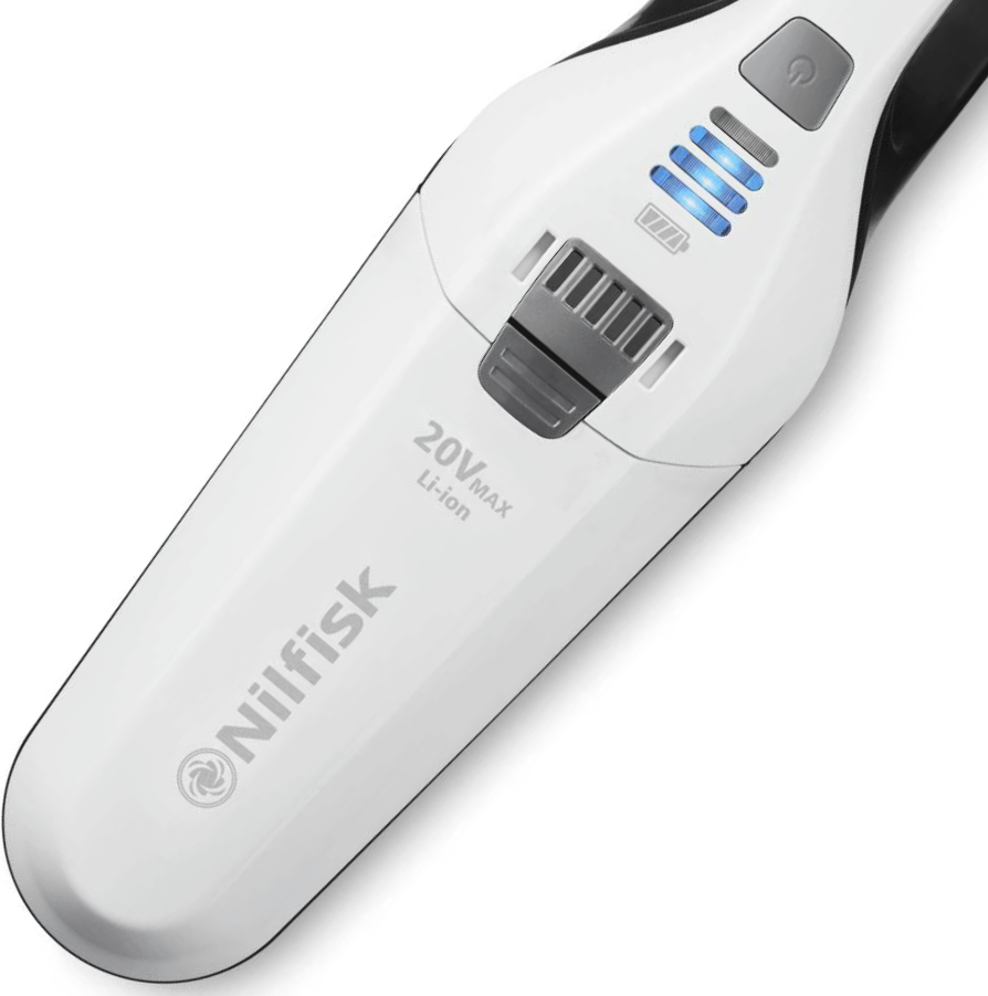 Nilfisk NF-128390016 er udstyret med et 20V Li-ion batteri, der giver op til 12 minutters driftstid. Det er ideelt til hurtige rengøringsopgaver, hvor man ønsker fleksibilitet uden at skulle håndtere ledninger.