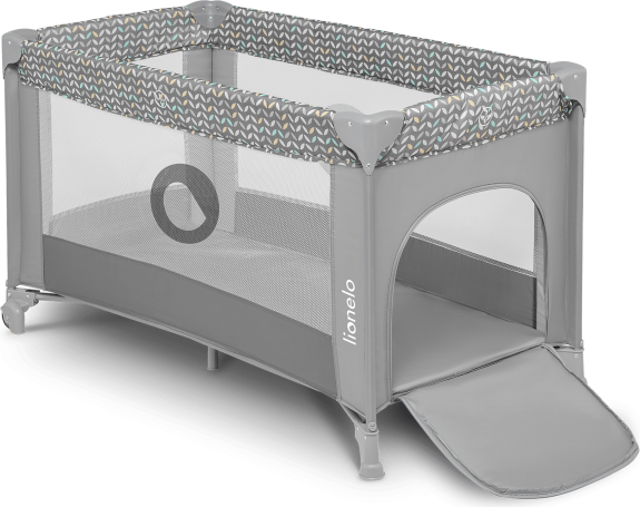 Lionelo Laura har to højdeindstillinger, så sengen kan tilpasses barnets alder og behov. Det gennemsigtige stofnet giver god ventilation og gør det muligt for forældre at holde øje med barnet. En lille luge i siden kan åbnes, så barnet selv kan kravle ind og ud, når det er passende.