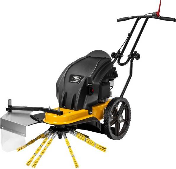 Maskinen drives af en 173 cc Texas TG595 4-takts benzinmotor, der yder 2,9 kW ved 3.000 omdrejninger i minuttet. Det giver masser af rå kraft til at køre børstehovedet rundt, hvorfor det ikke bliver et problem at få den til at rotere, selvom ukrudtet har fået lov til at gro tæt over tid.