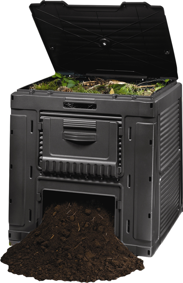 Kompostbeholderen leveres usamlet, hvilket gør transport og opbevaring let. Den er nem at samle og udstyret med to store påfyldningsåbninger og en udtagsåbning i bunden, hvorfor det selvfølgelig er nemt både at fylde affald i og tage færdig kompost ud igen.