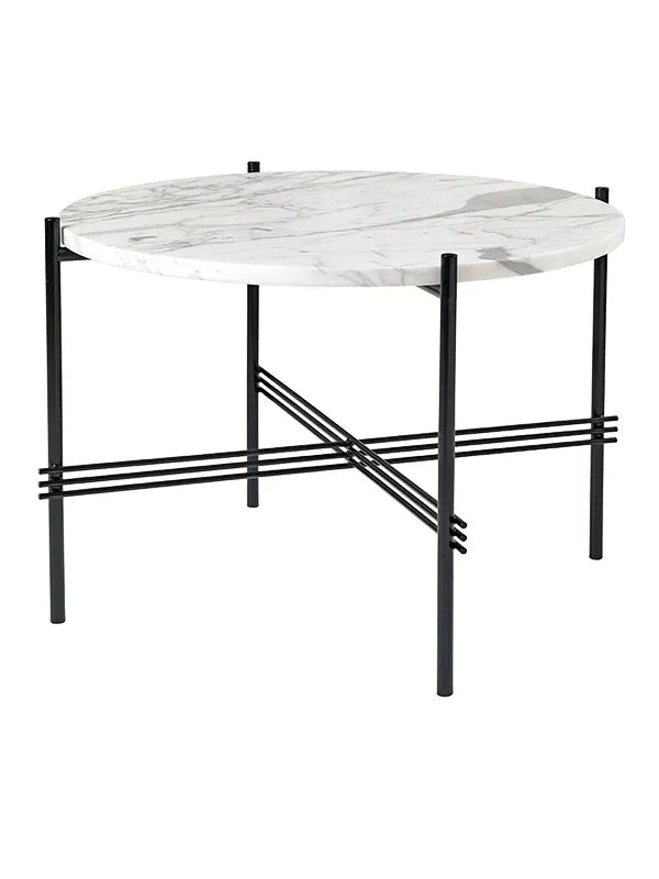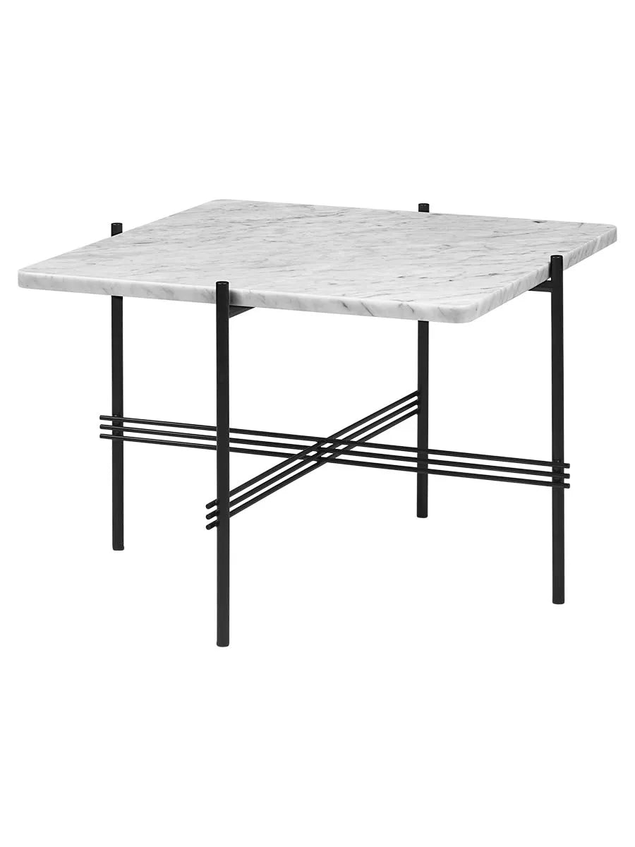 TS Table Square fås i flere størrelser og i farver som hvid, sort eller grå marmor, hvilket gør det nemt at tilpasse bordet til forskellige rum og stilarter. Stellet i sort metal fuldender designet med et diskret og tidløst udtryk.