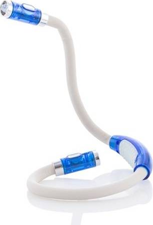 Lampen er designet til at hænge komfortabelt om nakken og har et fleksibelt skaft, så du nemt kan justere lyset præcist derhen, hvor du har brug for det. Med fire hvide LED-lys – to i hver ende – kan du vælge at tænde dem individuelt eller alle samtidig.