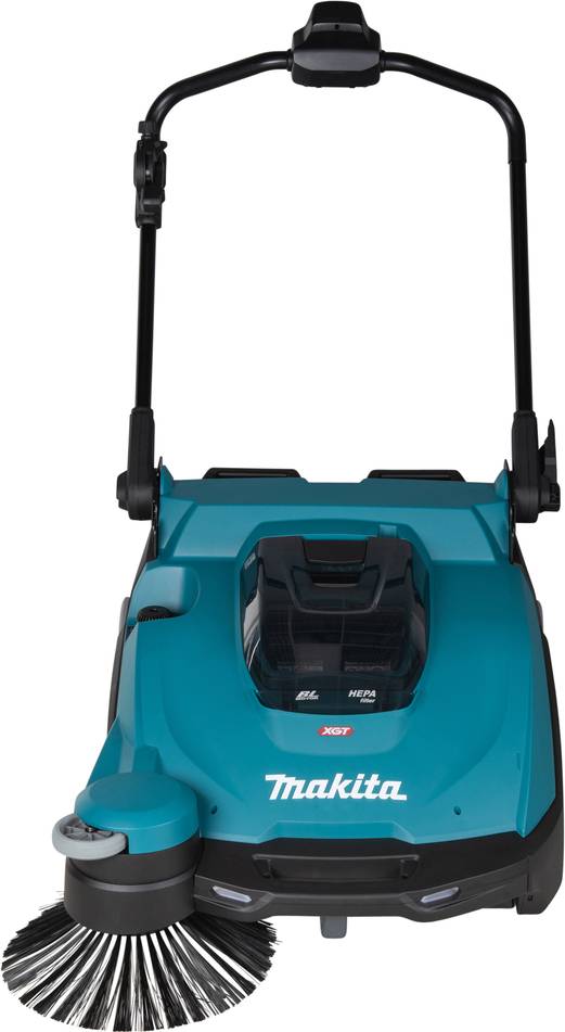 Makita VS001GZ er en avanceret batteridrevet fejemaskine fra Makitas 40V XGT-serie, designet til både indendørs og udendørs brug. Den kombinerer to kraftige modsat roterende børster med en effektiv sugefunktion, hvilket gør det muligt at opsamle alt fra fint støv til store genstande som plastikflasker.